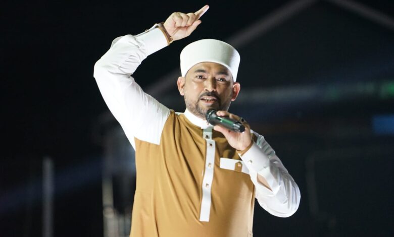 Di tengah keramaian, dua tokoh agama yang sangat dihormati, Habib Ahmad Alhabsie, dan Munsyid Mustofa Atef, berdiri dengan sangat santun di hadapan ribuan jamaah. Keduanya bergantian mengisi acara megah tersebut.