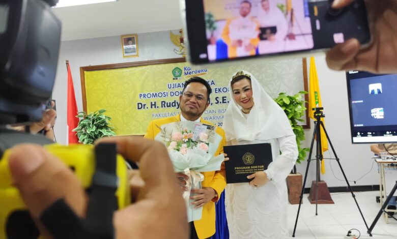 Dengan nilai akhir 92,9 dan Indeks Prestasi Kumulatif (IPK) sempurna 4,00, Rudy Mas’ud kini resmi menjadi doktor ilmu ekonomi ke-11 yang lulus dari kampus bergengsi di Bumi Mulawarman itu.