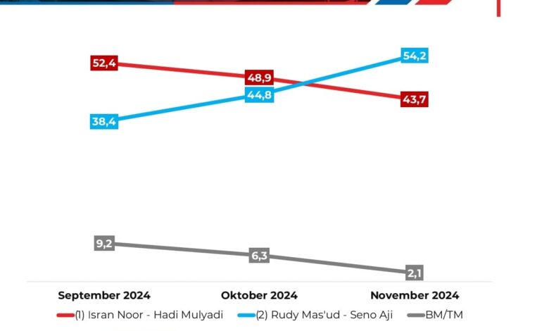 SEKALTIM.CO – Tim Pemenangan pasangan calon (paslon) nomor urut 02 pada Pemilihan Gubernur (Pilgub) Kalimantan Timur (Kaltim) 2024, Rudy Mas’ud dan Seno Aji, memberikan klarifikasi terkait hasil survei Cyrus Network yang menunjukkan elektabilitas paslon ini mencapai 54,2 persen.